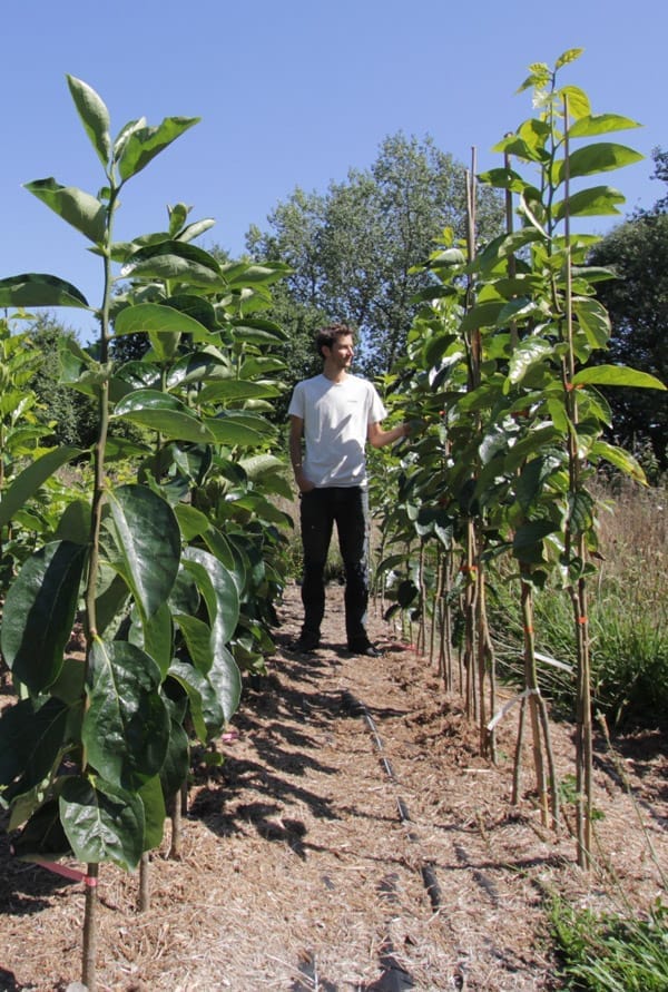 Les arbres sont cultivés sur « sol vivant » dans des buttes de BRF (Bois Raméal Fragmenté). Je pars du principe que la vie du sol crée la fertilité. Plus le sol est vivant et riche en matière organique, plus il est fertile.
